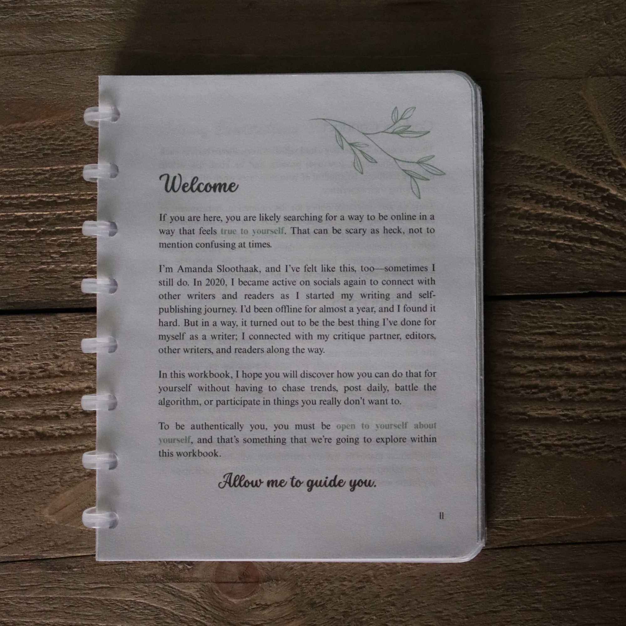 The completed workbook kept Amanda’s original simplicity of design intact but felt a lot more in line with her personal branding.